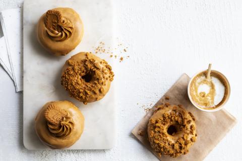 Cette recette comblera tous les fans de Biscoff® : donuts au glaçage, garnissage et à la décoration Biscoff®!